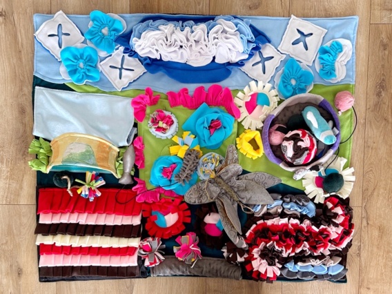 W naszej giga macie węchowej możesz ukrywać przysmaki na różnym poziomie trudności. Jeśli Twój kot dopiero zaczyna przygodę z taką zabawą, warto na początek schować smaczki niezbyt głęboko i lekko przykryć je fałdkami materiału. Z kolei dla doświadczonych „węchowych ekspertów” możesz zwiększyć wyzwanie – chowając przysmaki głębiej, w trudniej dostępnych częściach maty.